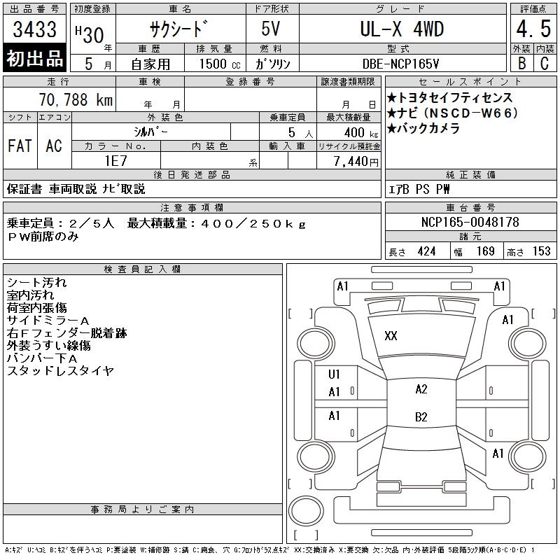 TOYOTA SUCCEED WAGON UL-X 4WD - лот 3433