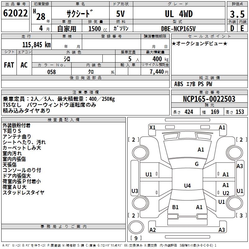 TOYOTA SUCCEED WAGON UL 4WD - лот 62022