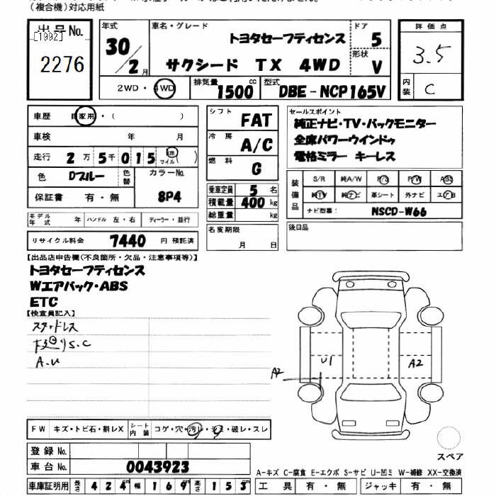 TOYOTA SUCCEED WAGON 4WD TX TOYOTA SAFETY SENS - лот 2276