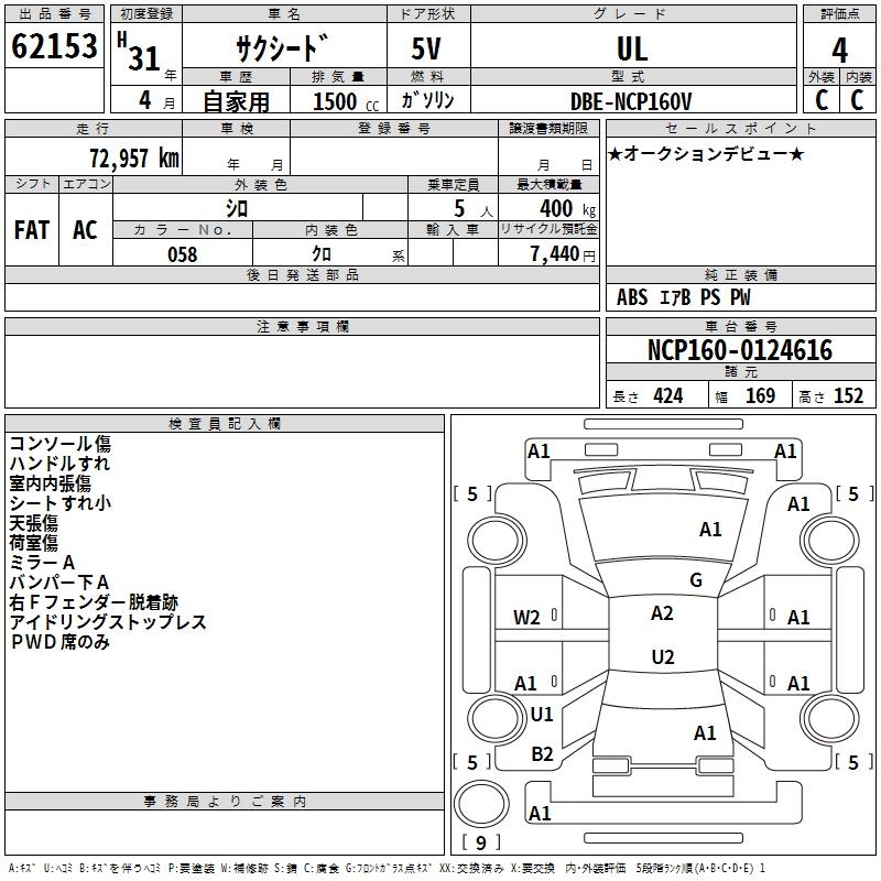 TOYOTA SUCCEED WAGON UL - лот 62153