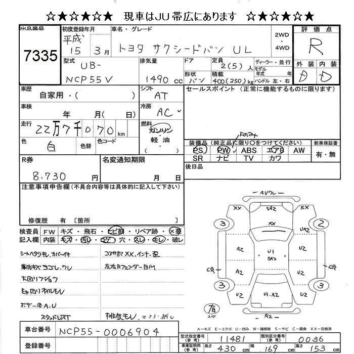 TOYOTA SUCCEED VAN - лот 7335