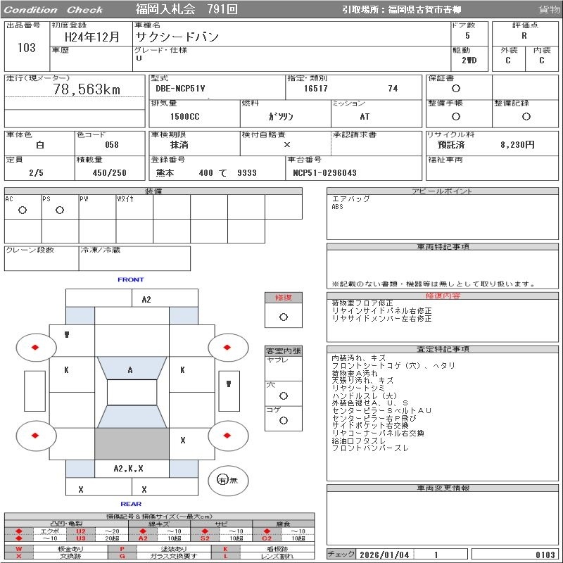 TOYOTA SUCCEED VAN - лот 103
