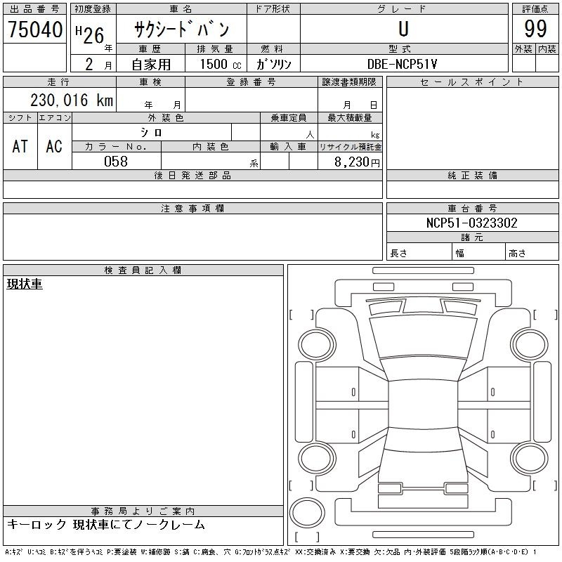 TOYOTA SUCCEED VAN - лот 75040