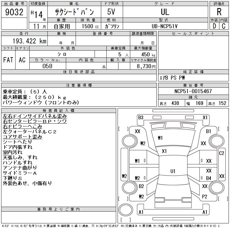 TOYOTA SUCCEED VAN - лот 9032