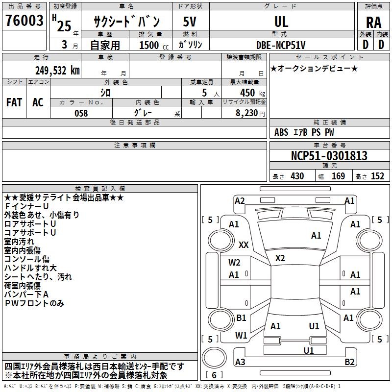 TOYOTA SUCCEED VAN - лот 76003