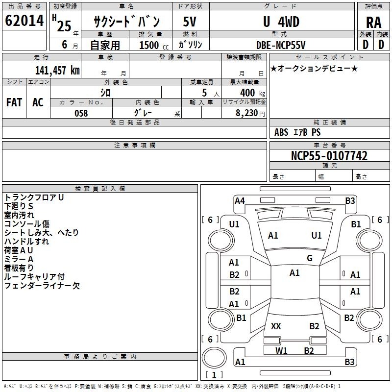 TOYOTA SUCCEED VAN - лот 62014