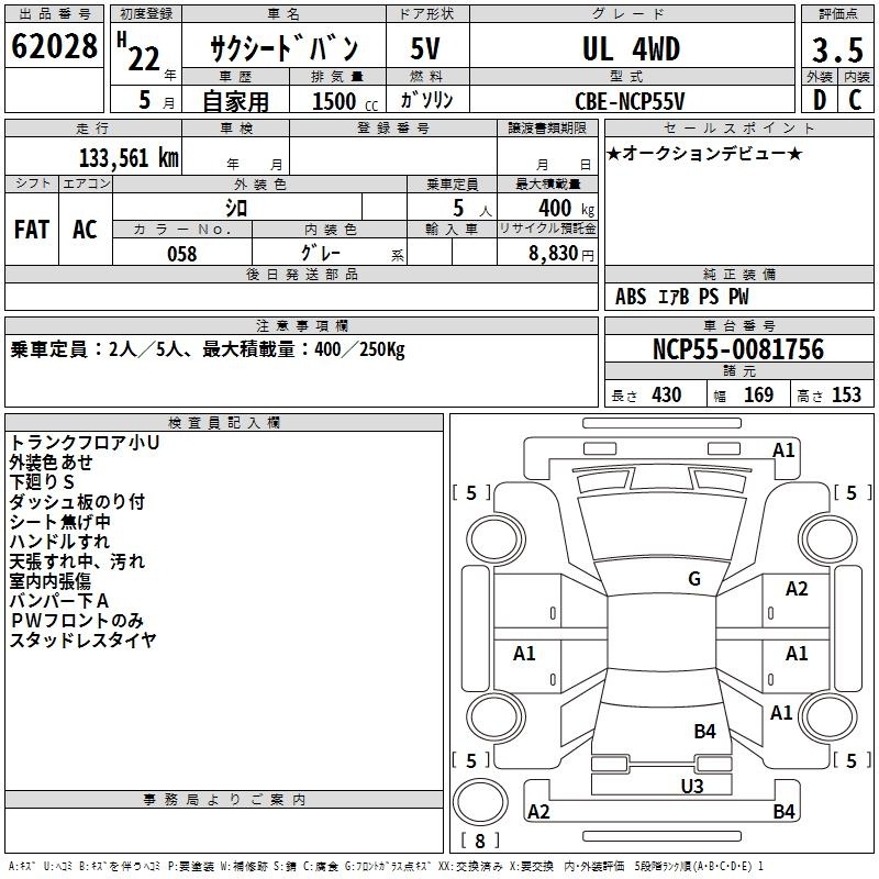TOYOTA SUCCEED VAN - лот 62028