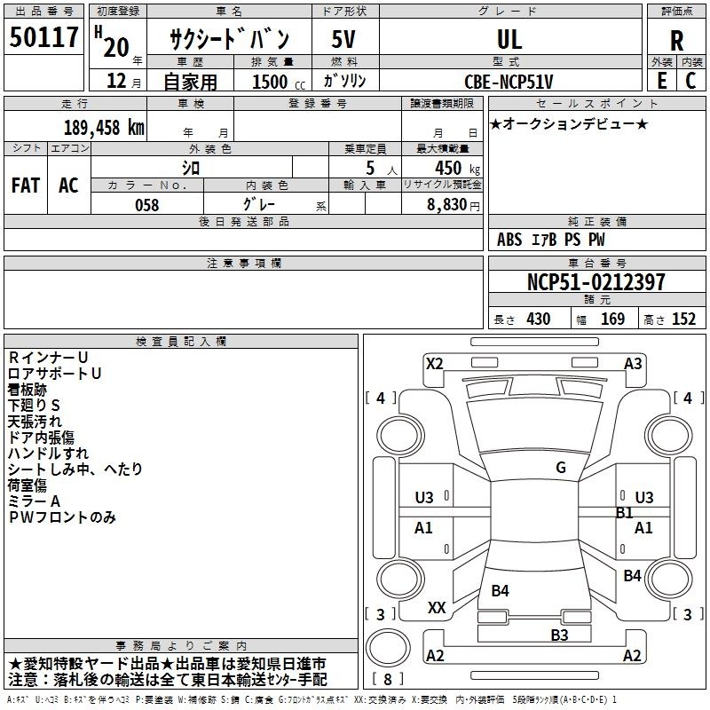 TOYOTA SUCCEED VAN - лот 50117