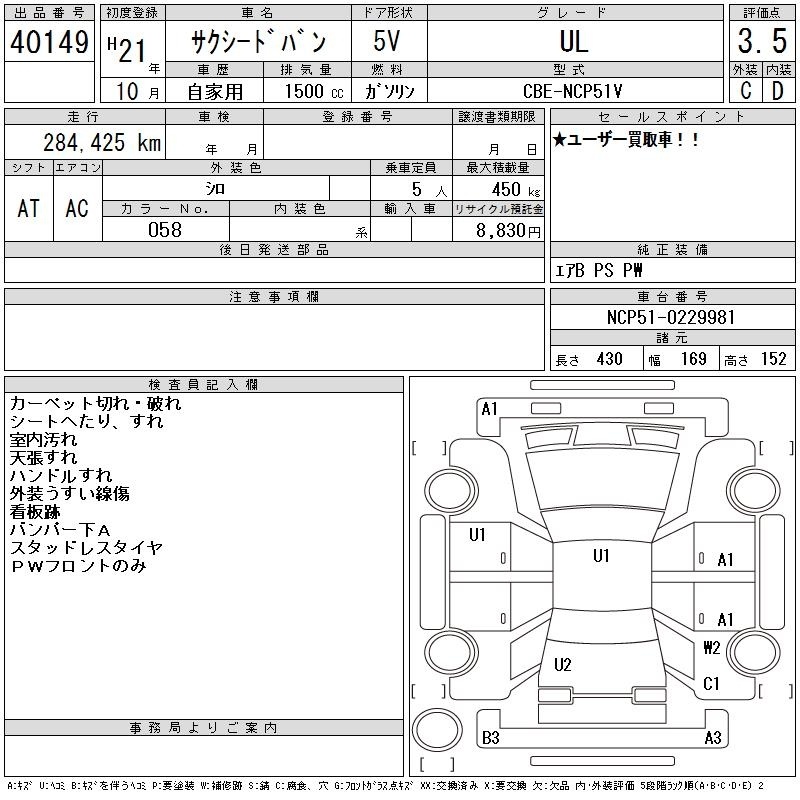 TOYOTA SUCCEED VAN - лот 40149