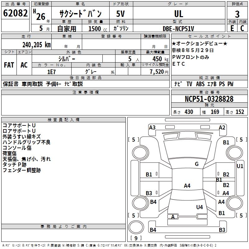 TOYOTA SUCCEED VAN - лот 62082