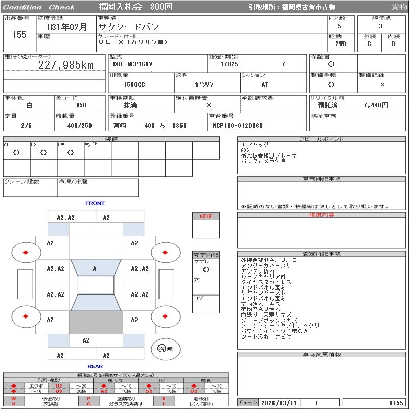 TOYOTA SUCCEED VAN - лот 155