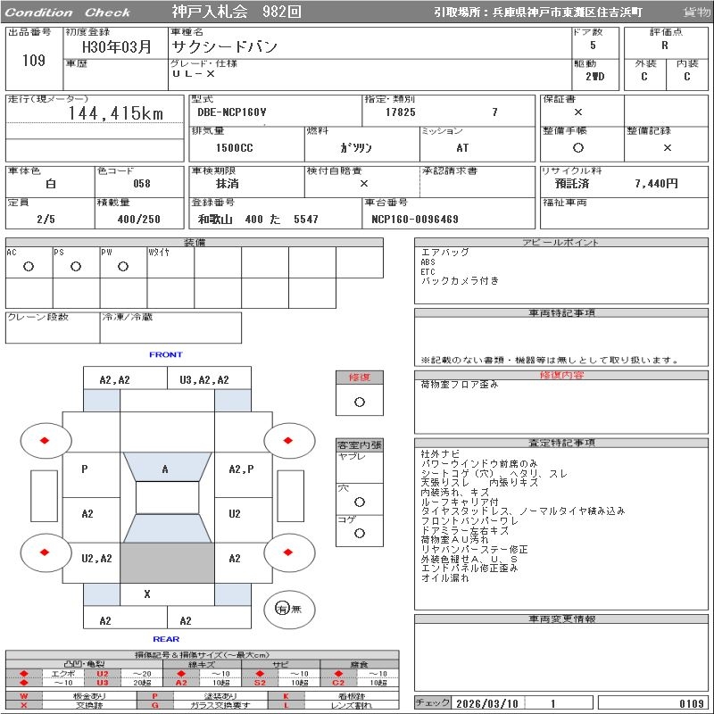 TOYOTA SUCCEED VAN - лот 109