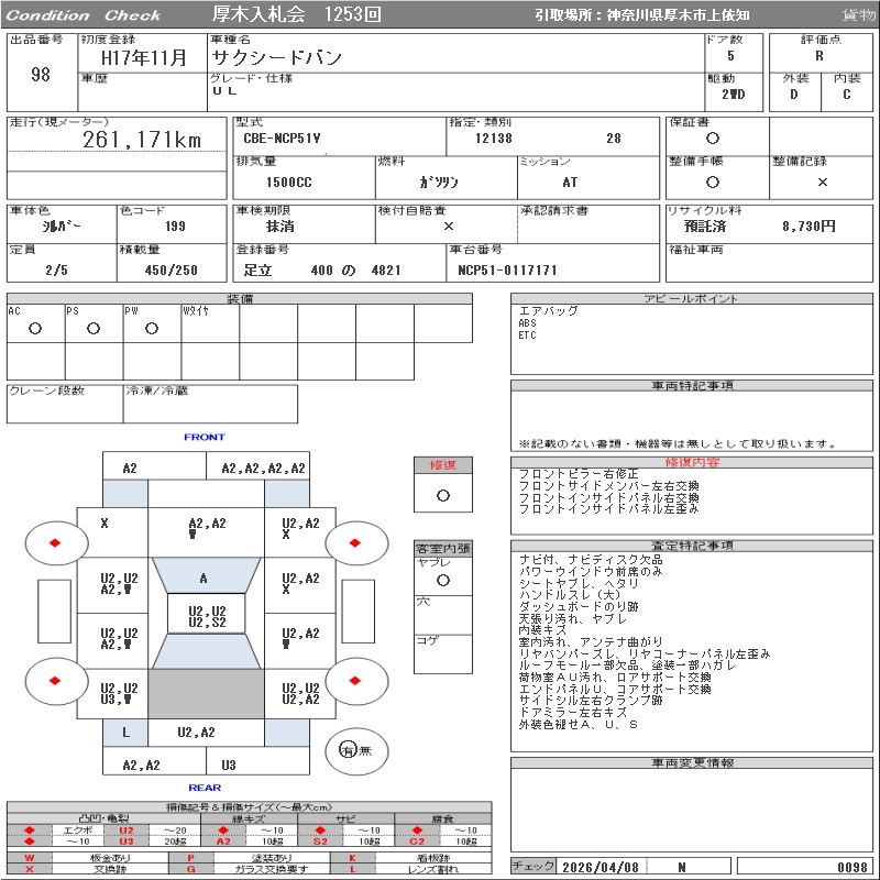 TOYOTA SUCCEED VAN - лот 98