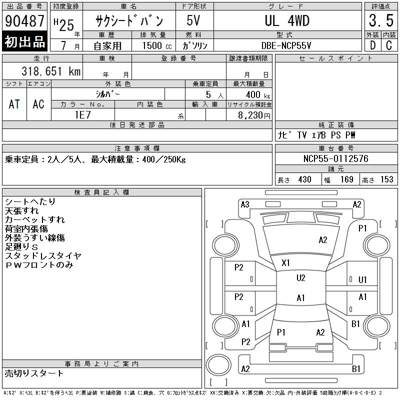 TOYOTA SUCCEED VAN - лот 90487