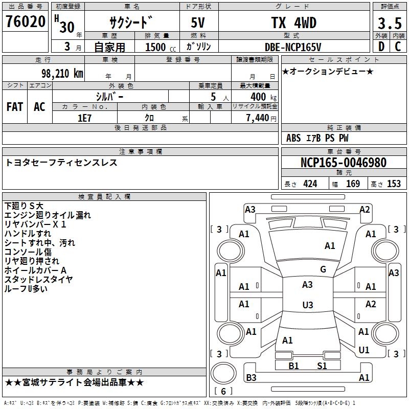 TOYOTA SUCCEED WAGON - лот 76020