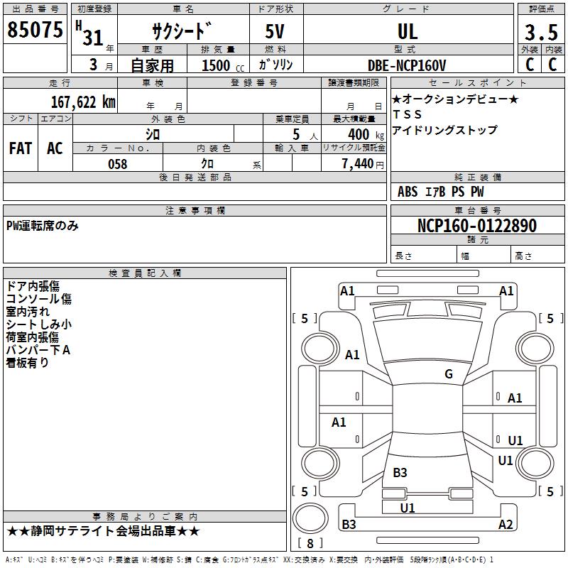 TOYOTA SUCCEED WAGON - лот 85075