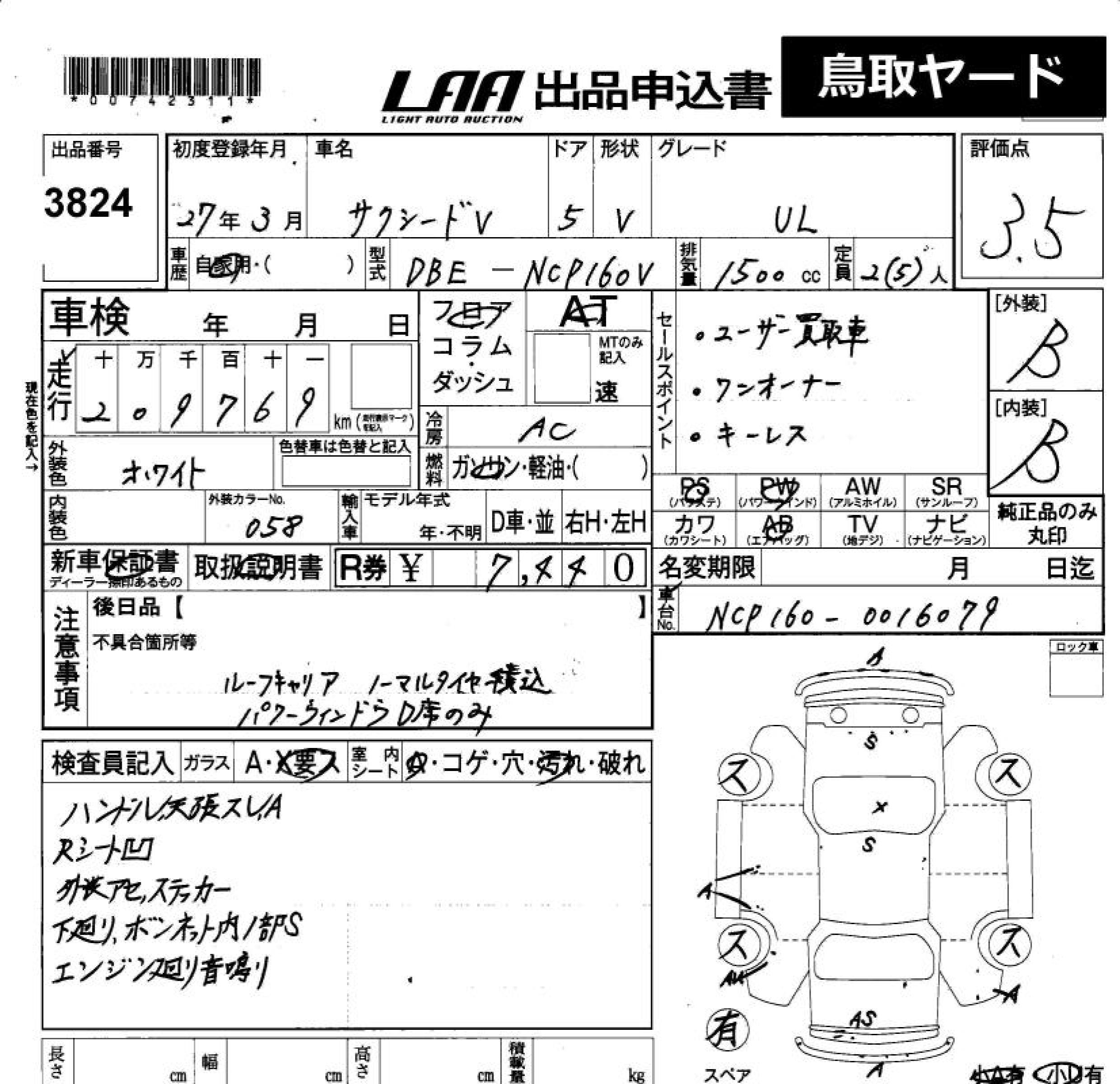 TOYOTA SUCCEED WAGON - лот 3824