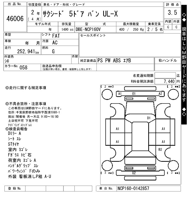 TOYOTA SUCCEED WAGON - лот 46006