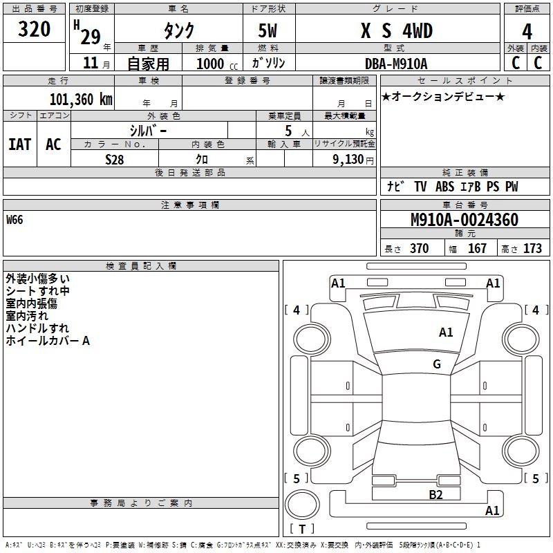 TOYOTA TANK X S 4WD - лот 320