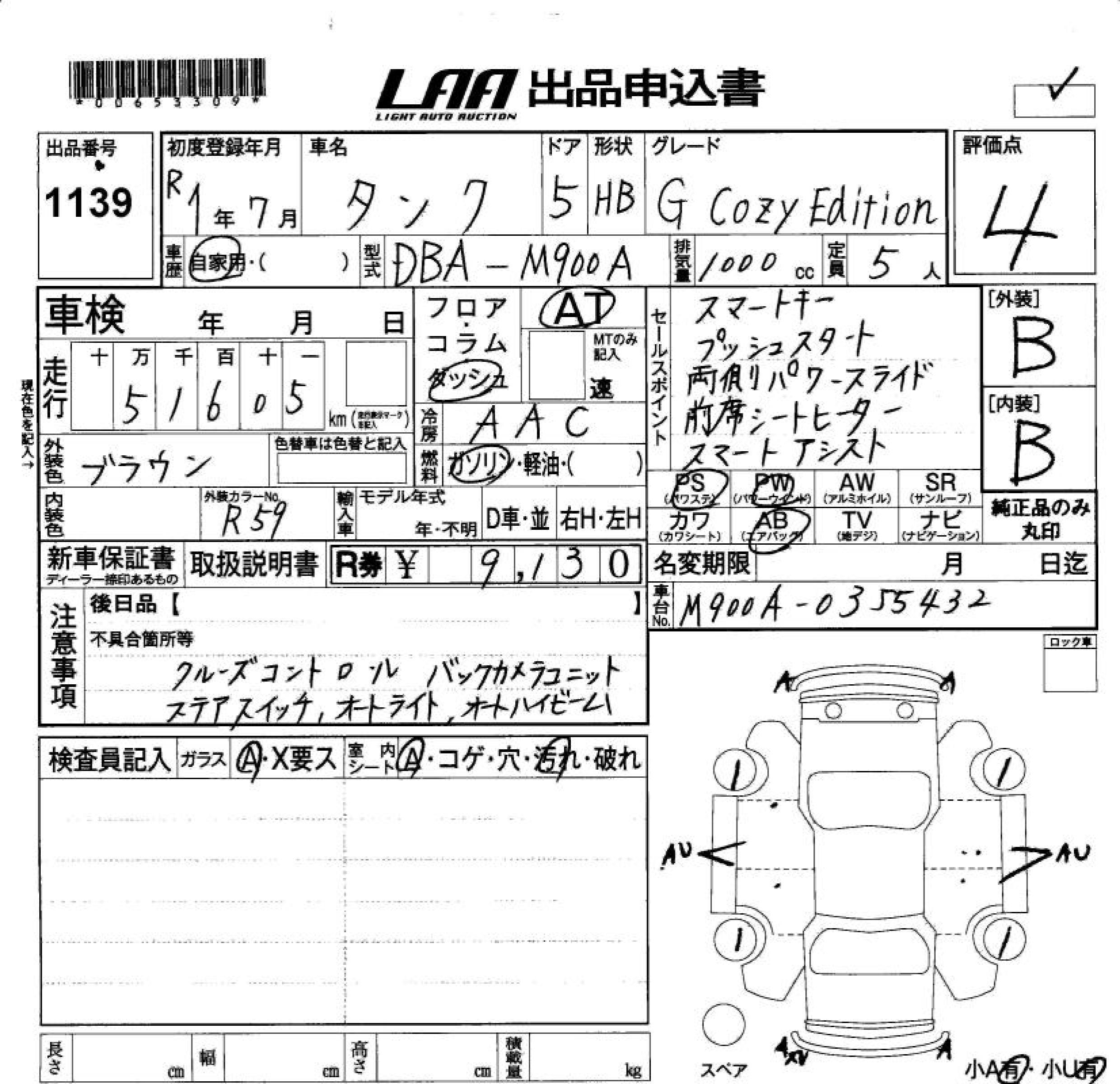 TOYOTA TANK G COZY EDITION - лот 1139