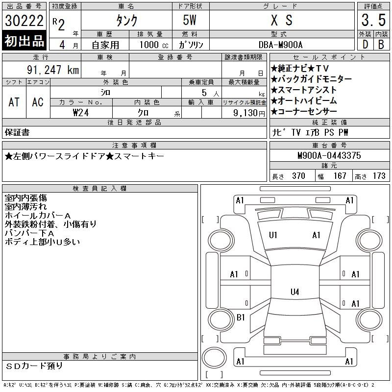 TOYOTA TANK X S - лот 30222