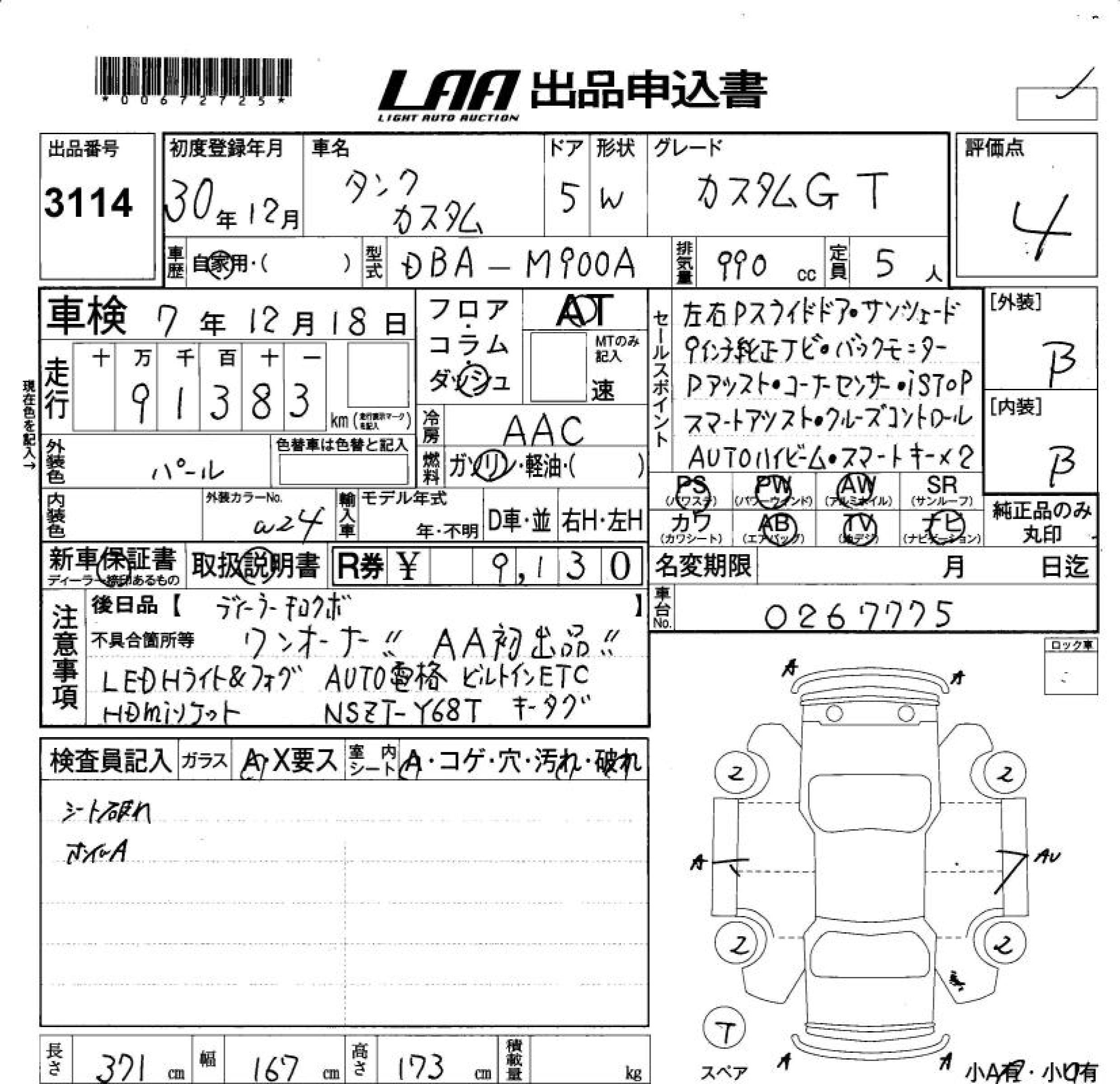 TOYOTA TANK CUSTOM G-T - лот 3114