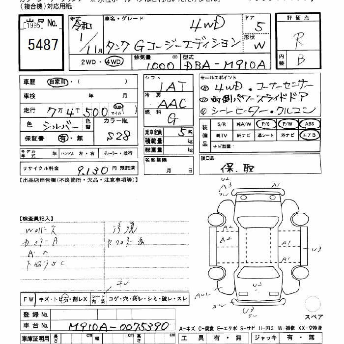 TOYOTA TANK 4WD G COZY EDITION - лот 5487