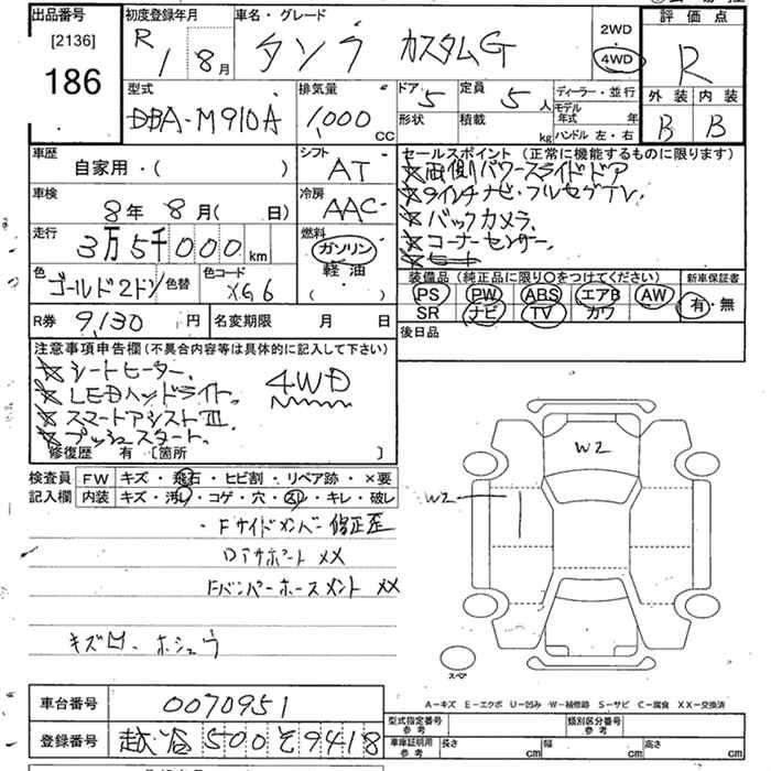TOYOTA TANK 4WD CUSTOM G - лот 186