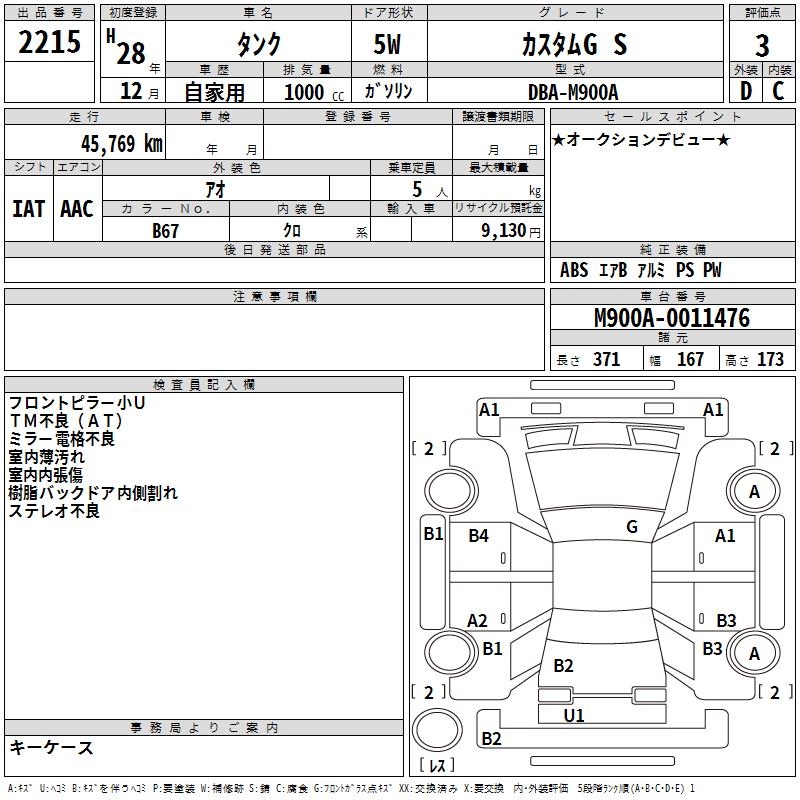 TOYOTA TANK CUSTOM G S - лот 2215