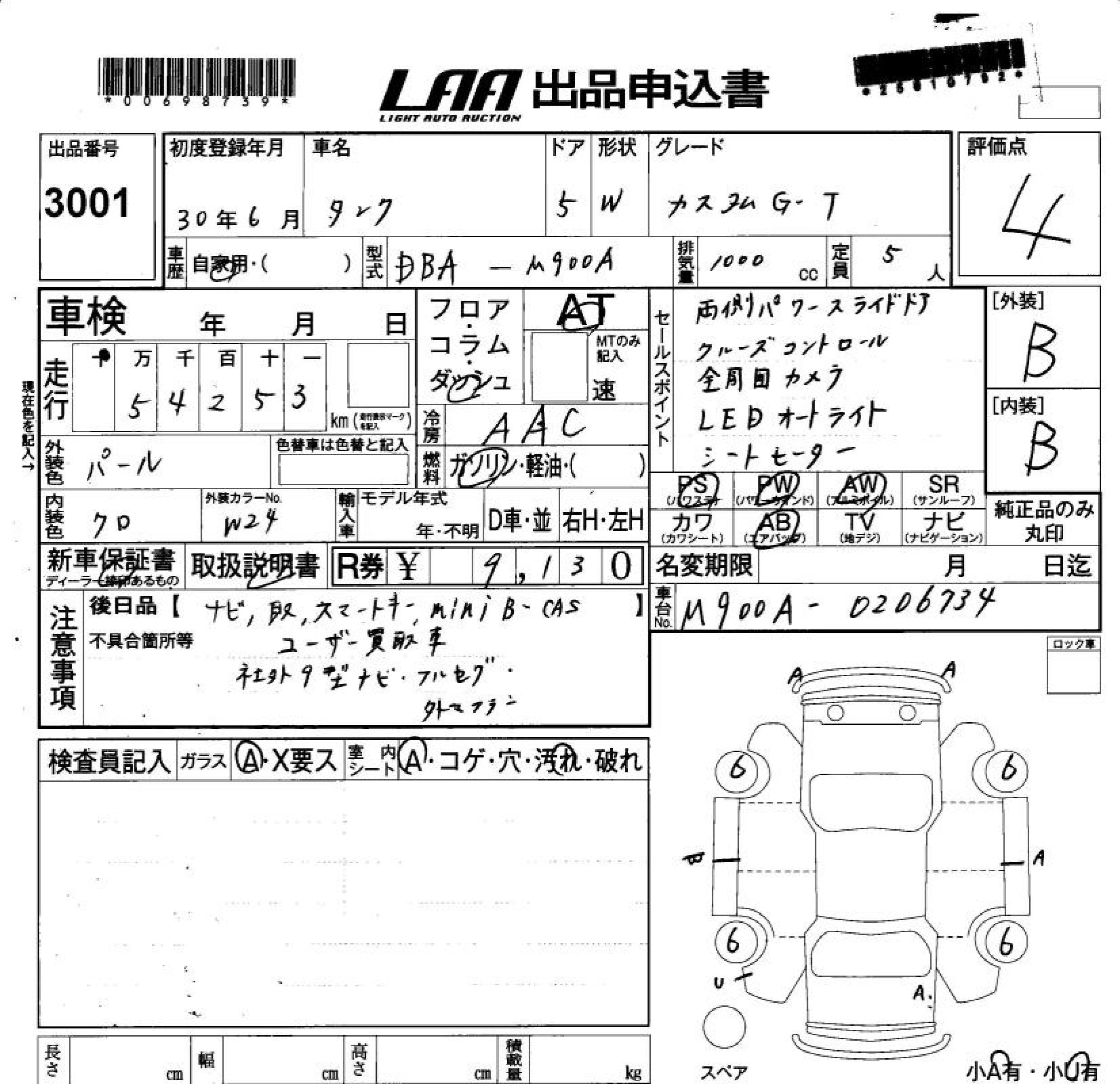 TOYOTA TANK CUSTOM G-T - лот 3001