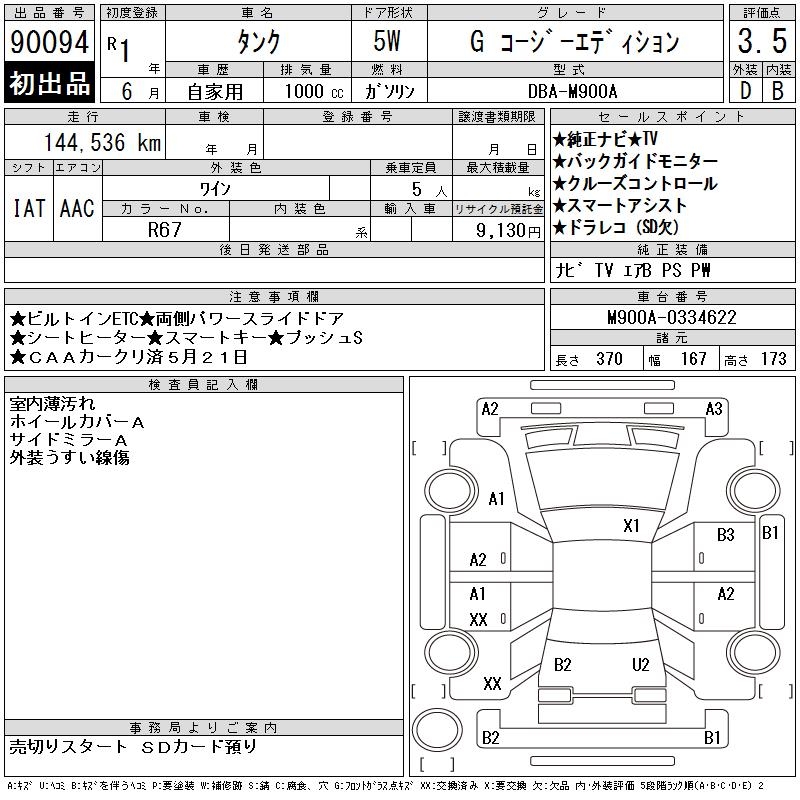 TOYOTA TANK G COZY EDITION - лот 90094
