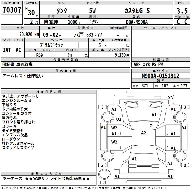 TOYOTA TANK CUSTOM G S - лот 70307