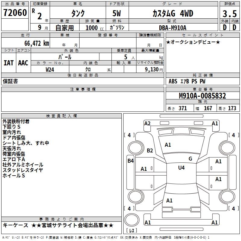 TOYOTA TANK CUSTOM G 4WD - лот 72060