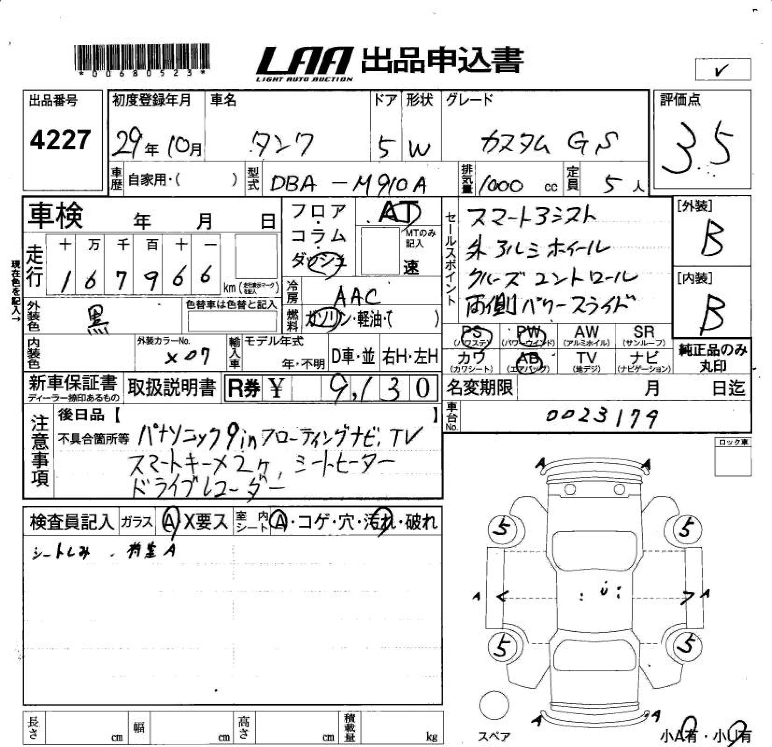 TOYOTA TANK CUSTOM G S - лот 4227