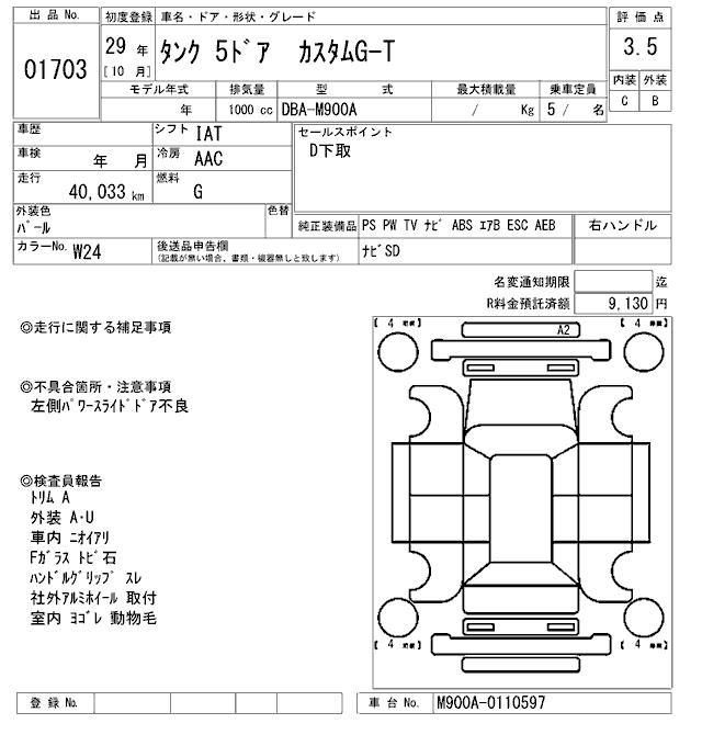 TOYOTA TANK CUSTOM G-T - лот 1703