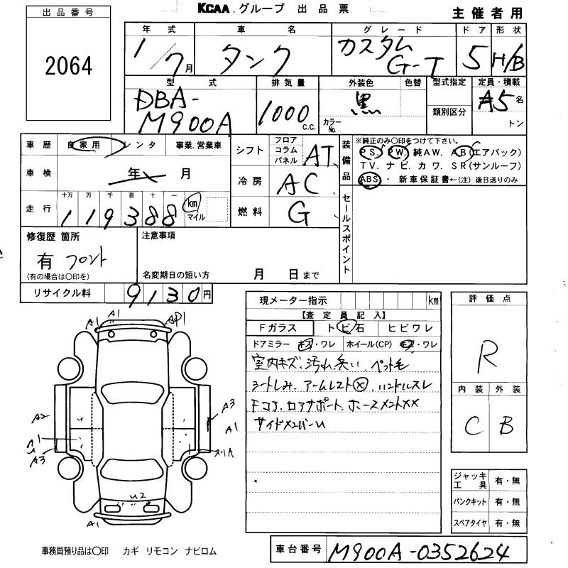 TOYOTA TANK CUSTOM G-T - лот 2064