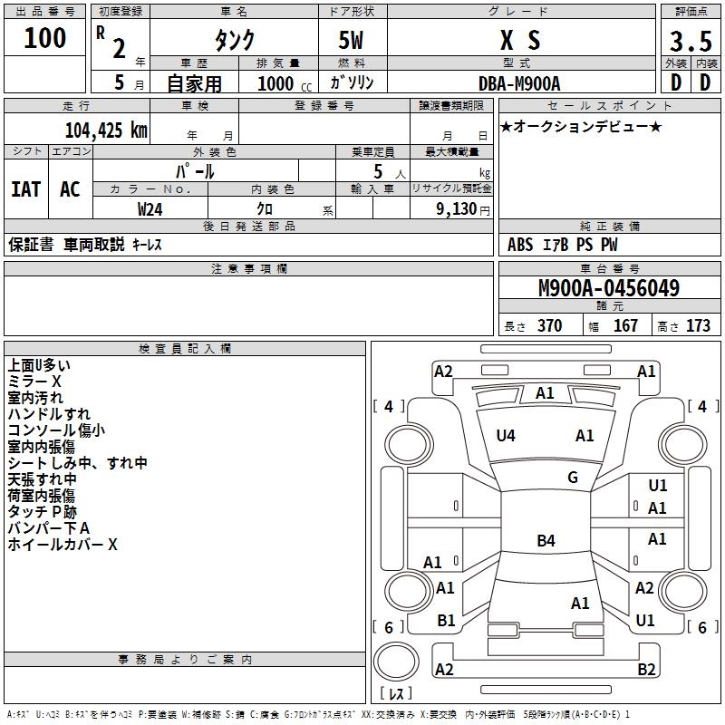 TOYOTA TANK X S - лот 100
