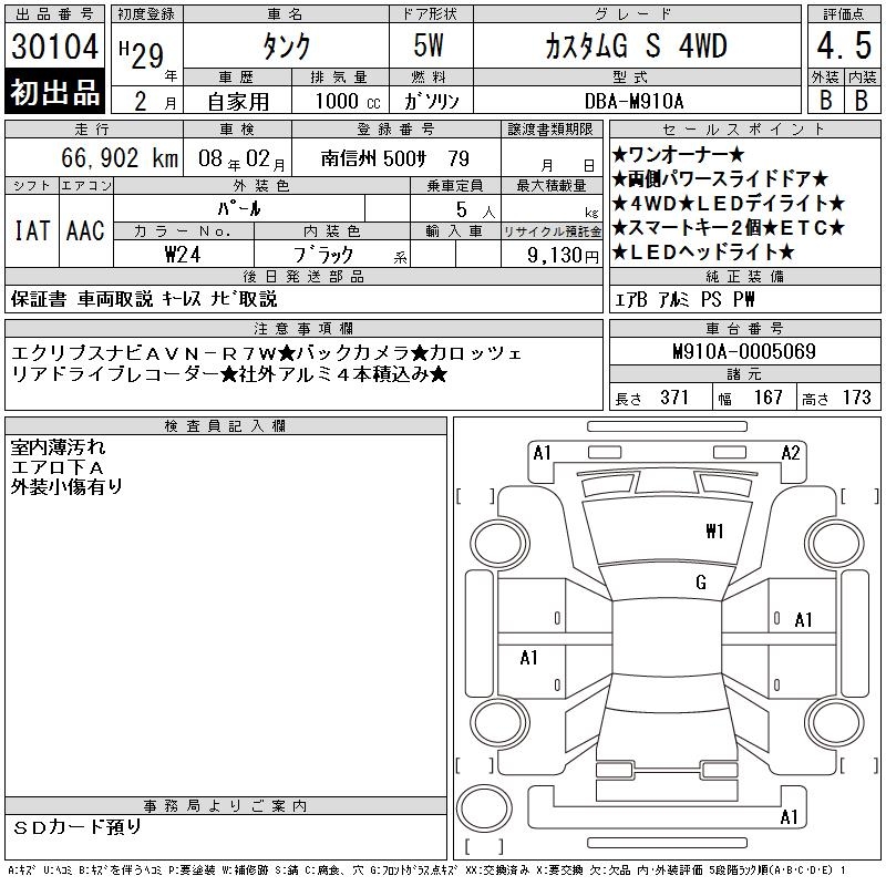 TOYOTA TANK CUSTOM G S 4WD - лот 30104