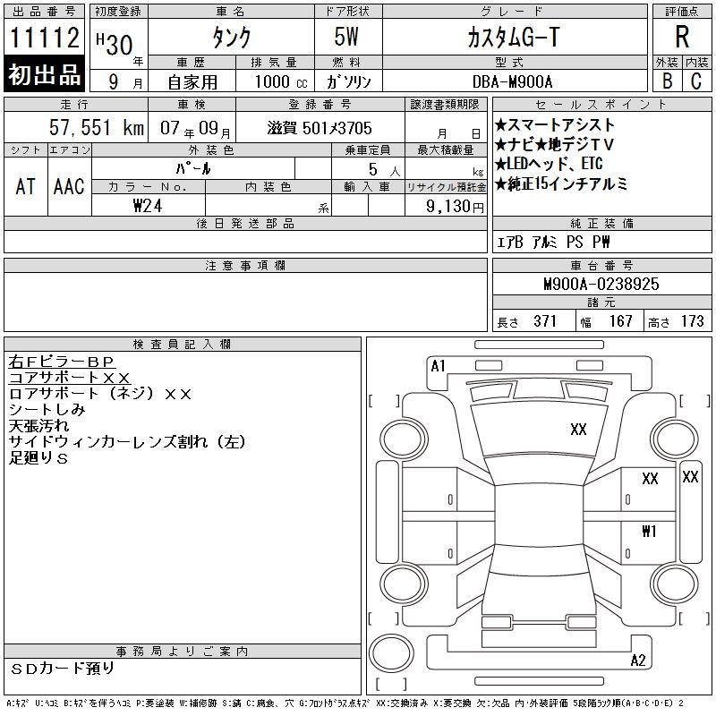TOYOTA TANK CUSTOM G-T - лот 11112