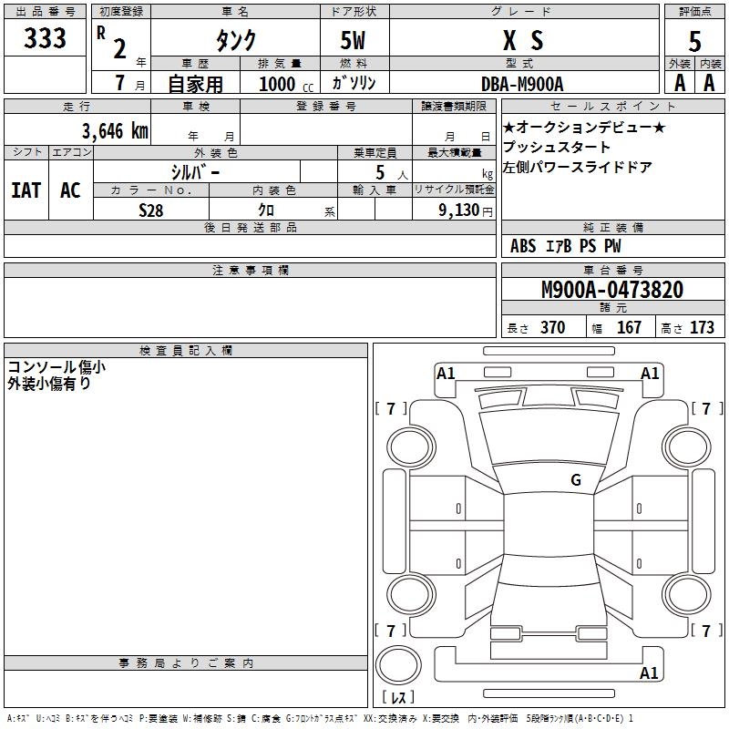TOYOTA TANK X S - лот 333
