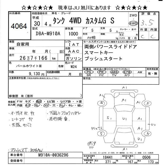 TOYOTA TANK 4WD CUSTOM G S - лот 4064