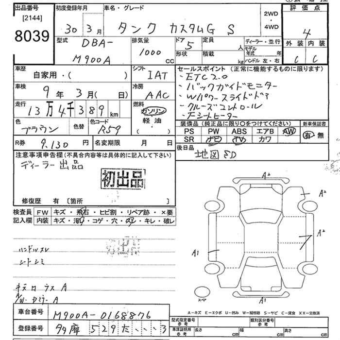 TOYOTA TANK CUSTOM G S - лот 8039