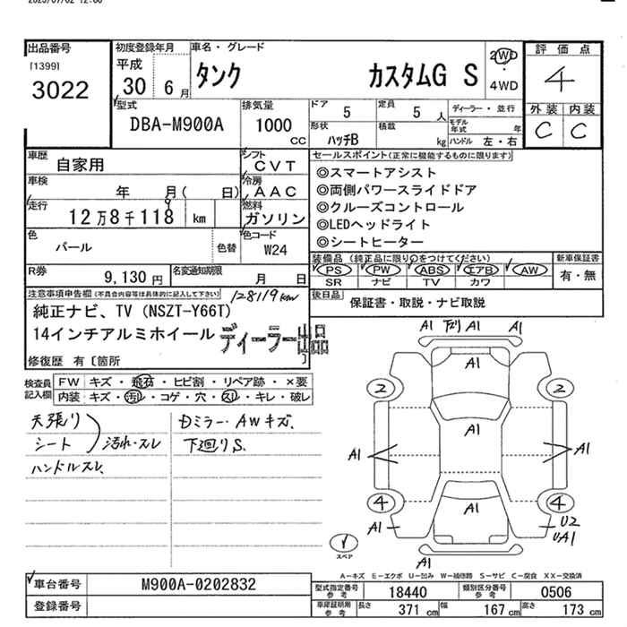 TOYOTA TANK CUSTOM G S 2WD - лот 3022