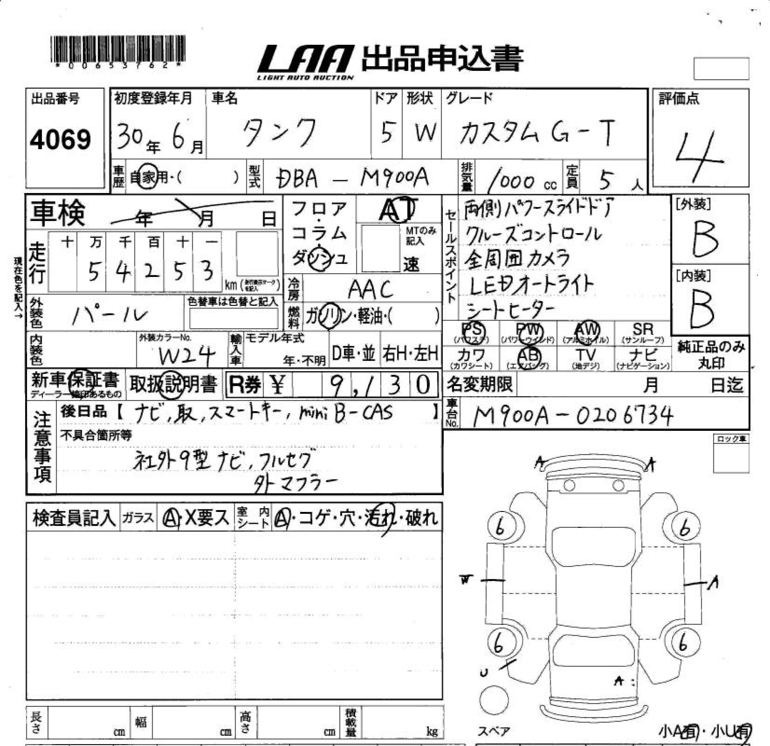 TOYOTA TANK CUSTOM G-T - лот 4069