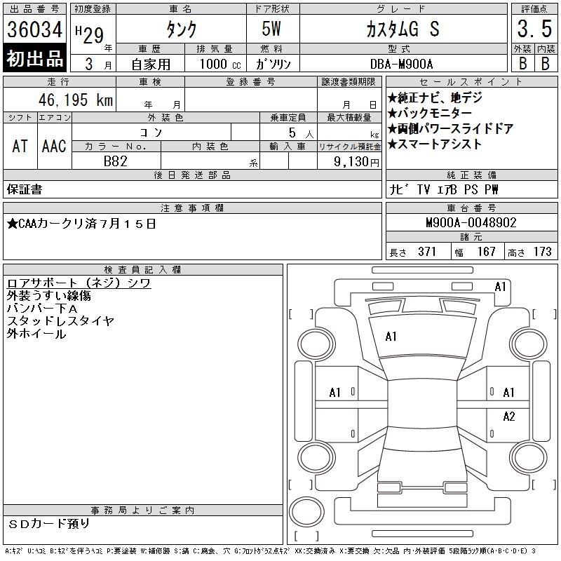 TOYOTA TANK CUSTOM G S - лот 36034
