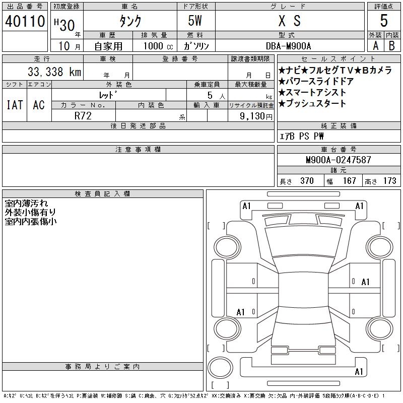 TOYOTA TANK X S - лот 40110