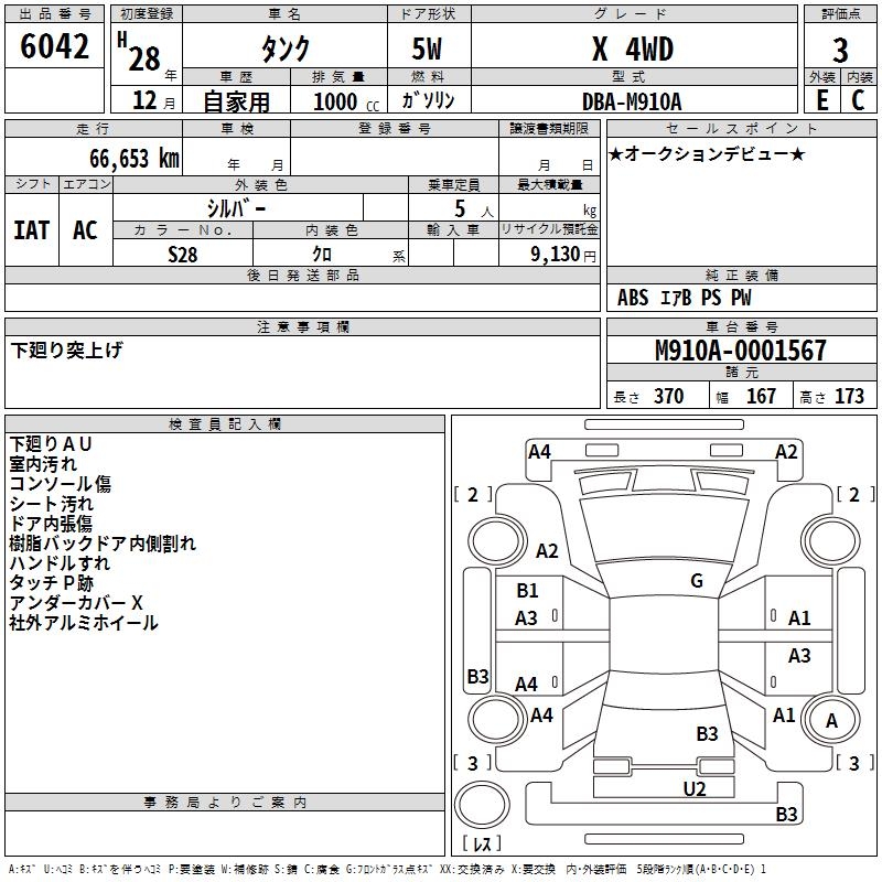 TOYOTA TANK X 4WD - лот 6042