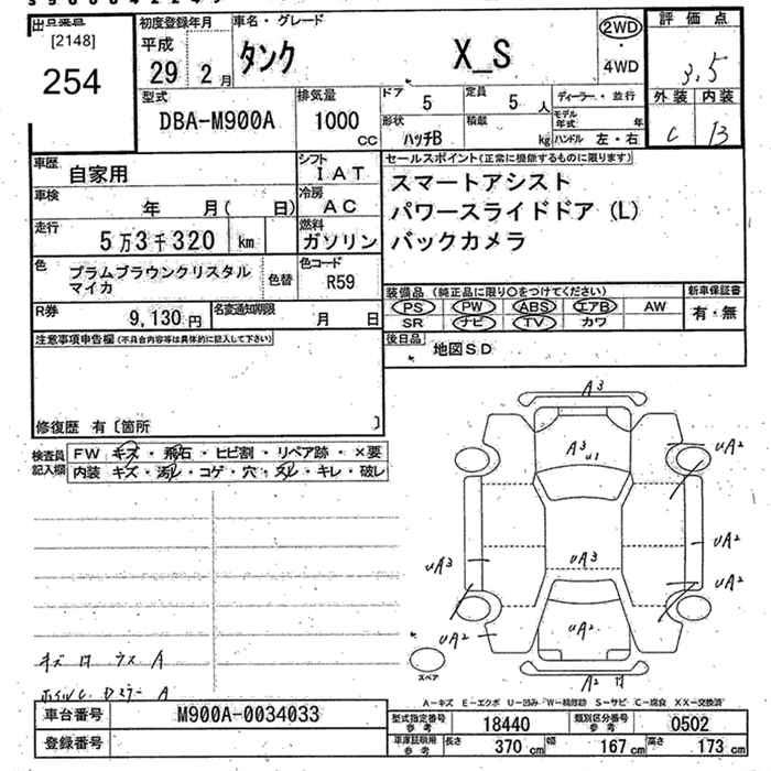 TOYOTA TANK X S - лот 254