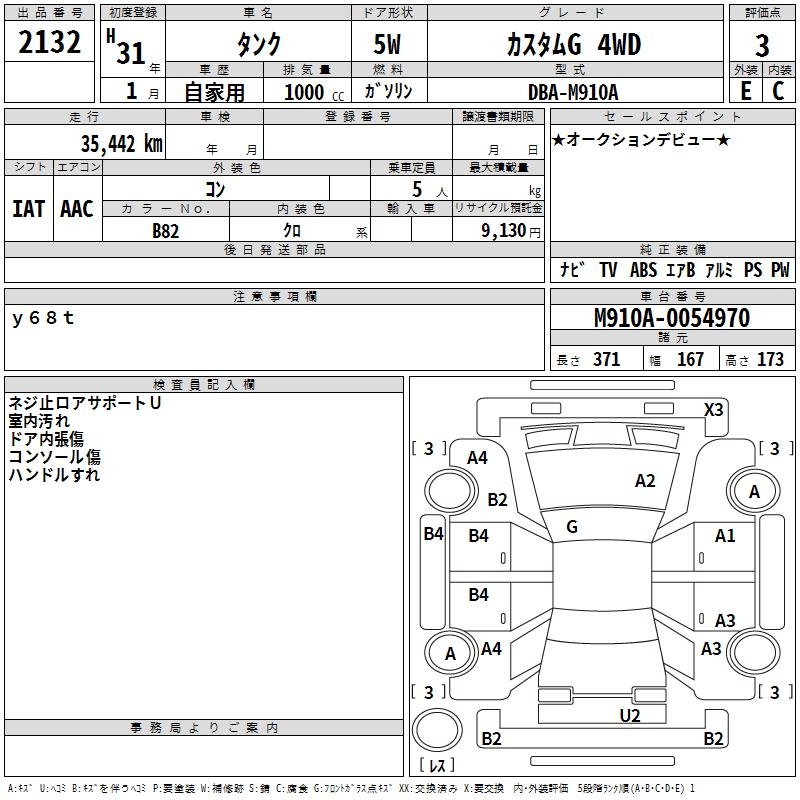 TOYOTA TANK CUSTOM G 4WD - лот 2132