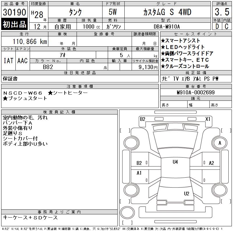 TOYOTA TANK CUSTOM G S 4WD - лот 30190
